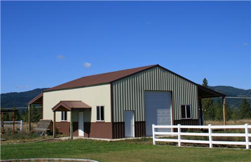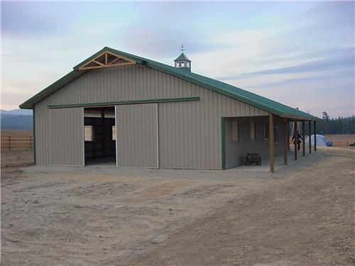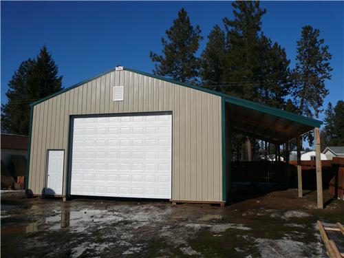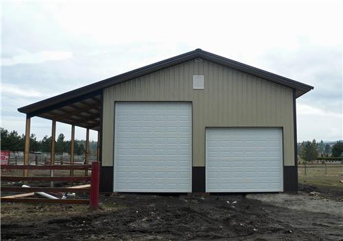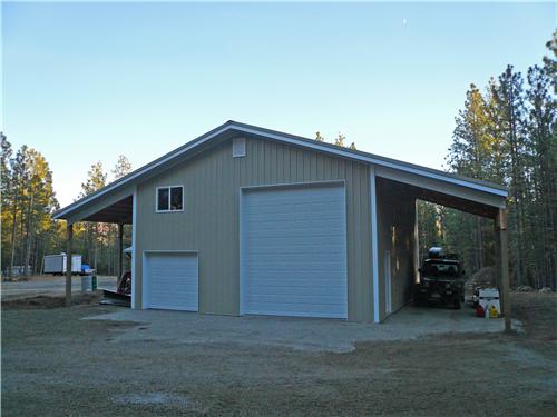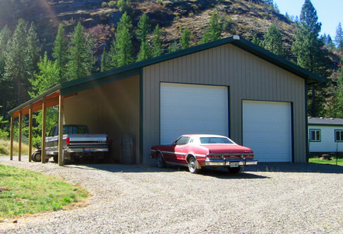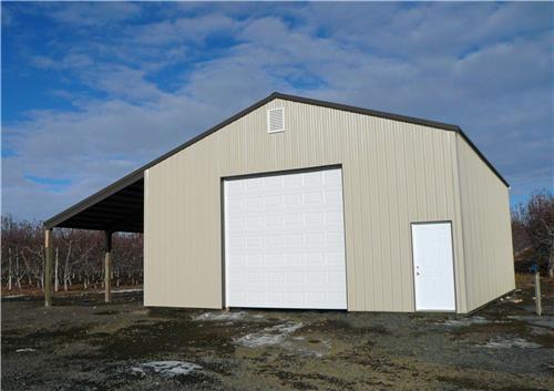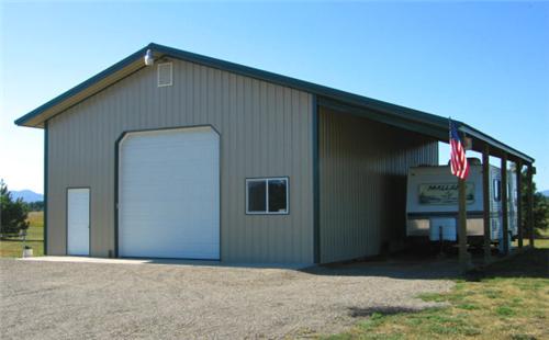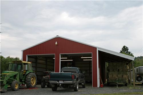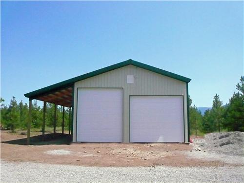 A lean-to is an open roof cover attached to the main structure. Lean-to’s are typically between 8’ and 16’ wide. The lean-to option is very popular for inexpensive covered storage. It can be used to store cars, boats, RV’s, farm equipment, firewood, dog kennels, etc. Some covers have a designated area for hot tubs, BBQ’s and patio furniture, which allows them to be used for relaxation purposes. When designing a building take this affordable option into consideration.