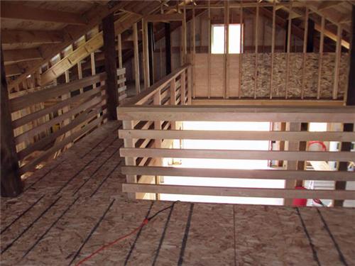 A loft is a wood floor designed to be used as a second story or room typically used for storage or other specific purposes. The loft floor is usually only a portion of the main level leaving one or more sides open to the lower level. In barns, a loft floor is used to store hay. In a garage or shop the loft would be used to store miscellaneous items.