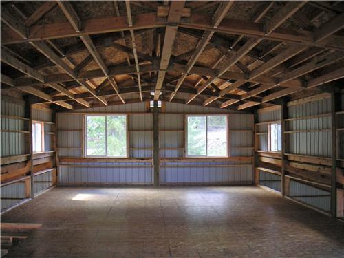 This Monitor building has (2) 12′ sheds attached to the main structure and an additional open lean-to attachment connecting to the shed on the right side. A 1300 sq ft loft floor was installed to incorporate living quarters with a covered 26’x10′ redwood deck. The roof features a heavy 26 gauge copper penny architectural steel panel with 2′ roof overhangs are on all sides. The cupola is 48″ with window sides. The siding is rough sawn wood board and batten.