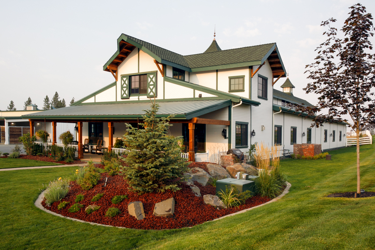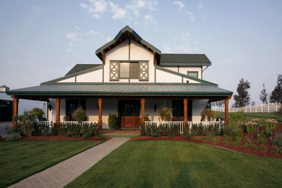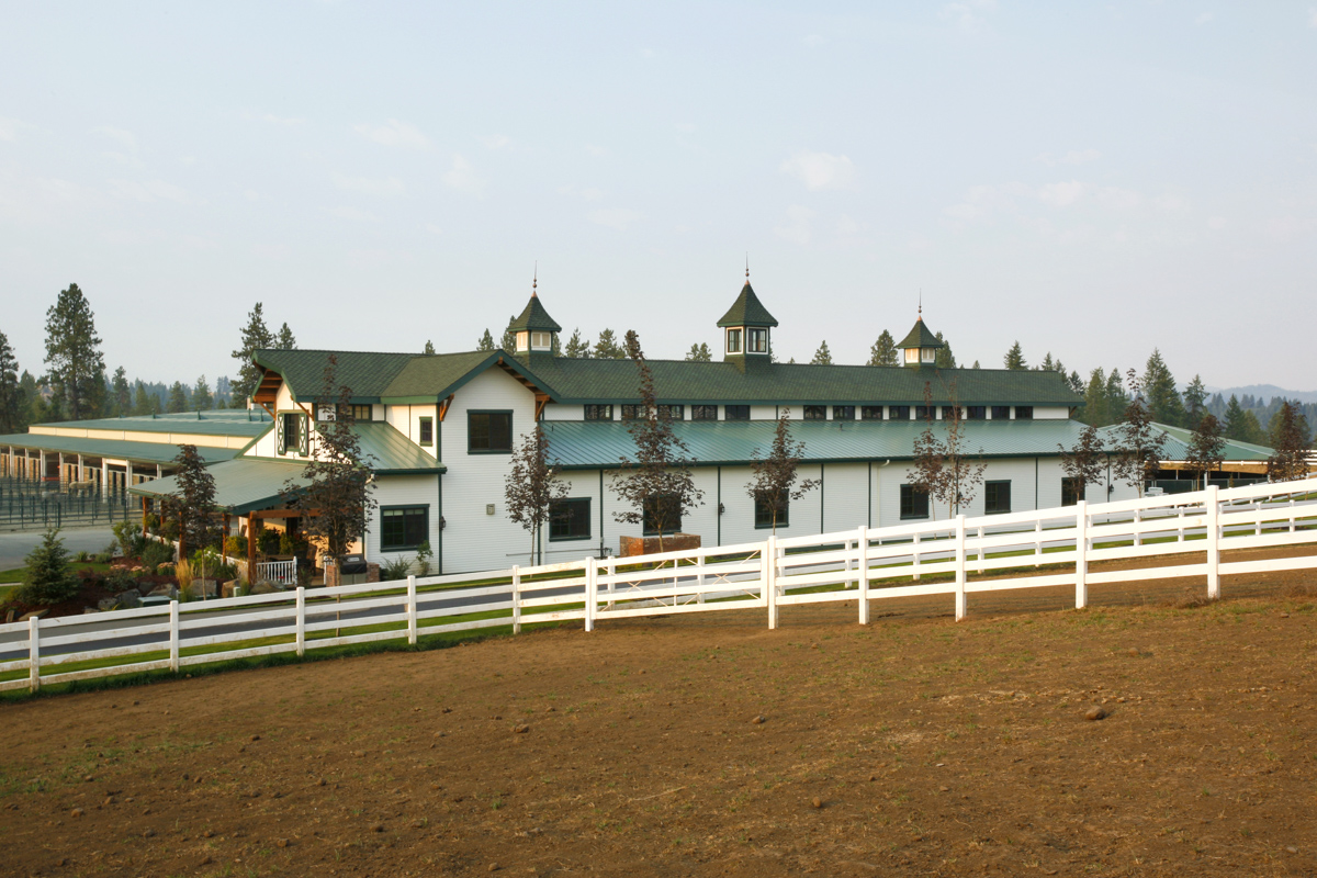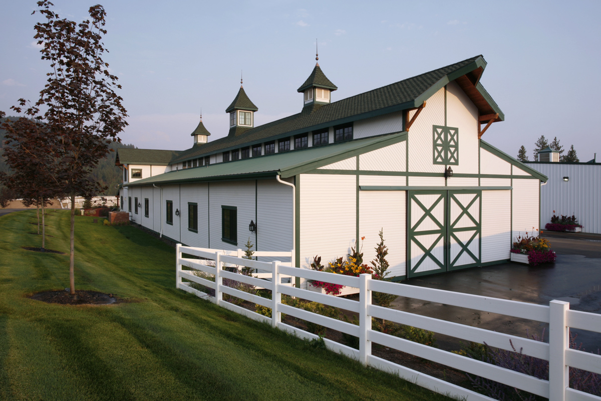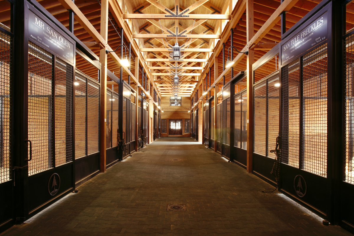This Stallion Barn is a true showpiece. The owner spared no expense when it came to the construction of this project. We were chosen among dozens of custom builders because of our unmatched experience and attention to detail. The stable section is 50′ wide x 140′ long. Post framed using heavy timber with mortise and tenon connections. Exposed beam trusses 8′ on center. All perimeter walls and stalls are lined with 2×8 tongue and groove. The entire roof deck is 2×6 tongue and groove cedar plank. There are (10) 16’x17′ stalls with custom powder coated stall fronts with heavy-duty sliding doors. The living quarter’s space is 50’x40′ with all upgraded amenities. The living room, kitchen, bar, and bedrooms feature upscale western decor. Exterior options include fiber cement siding, architectural composition roofing, and cedar soffits under the bird’s peak roof detail. The cupolas are custom built to match the roof pitch and include copper spires.