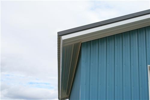 The roof overhang option is a very popular architectural feature. It will give the average building a more custom upscale look. Our overhangs come fully enclosed with a fascia and soffit trim package. Aside from looking good it also helps to direct snow and rain away from windows, doors, and walls for added weather protection.