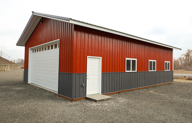 Rolled rib steel panels are used to side and roof a large majority of our buildings. The 29 gauge steel panels are 36” wide and come in a vast array of colors. The profile is low with color matched exposed fasteners. The silicon impregnated paint system comes with a minimum 40 year warranty. This is the least expensive siding and roofing option and it is virtually...